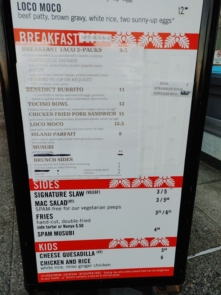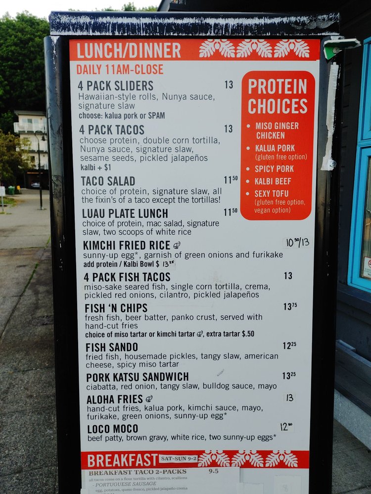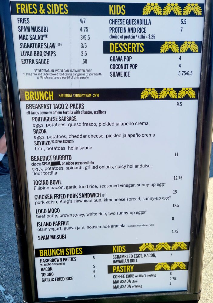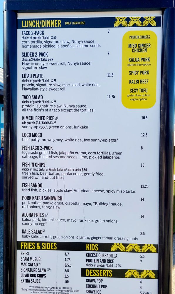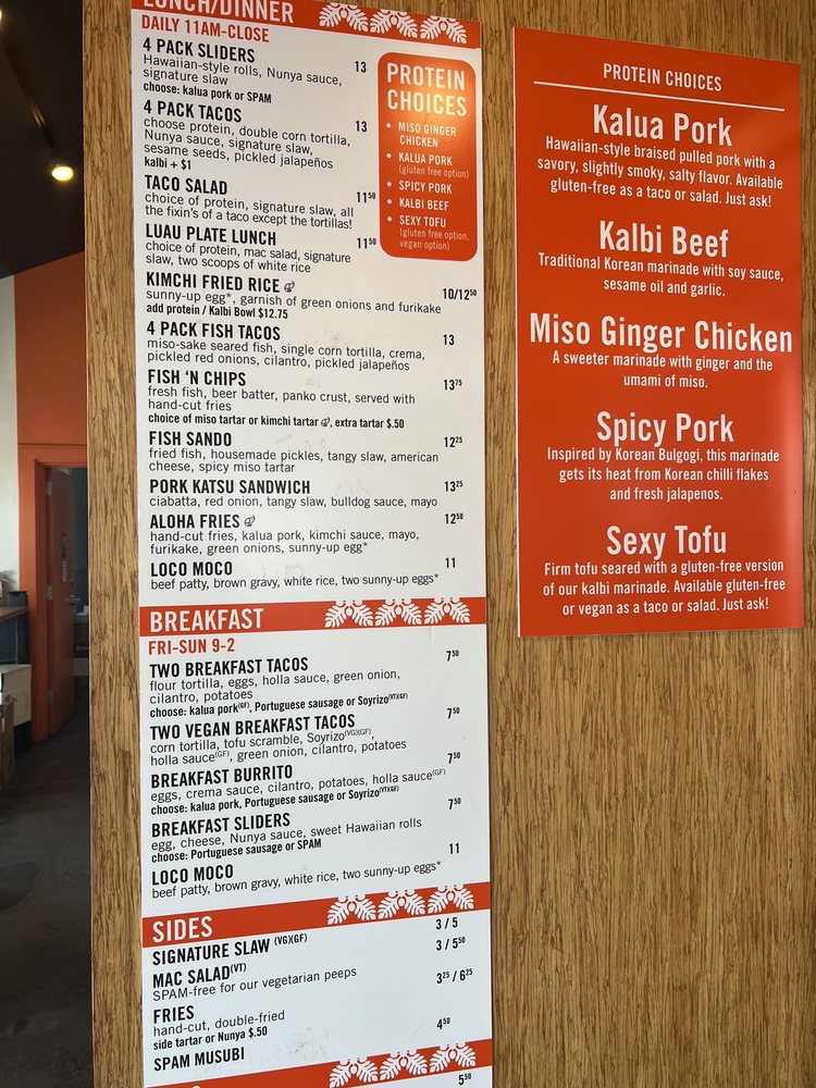 Have it for lunch or dinner! Choice of protein, signature slaw, mac salad, white rice, Hawaiian-style sweet rollspicy pork contains a wee bit of shrimp paste.