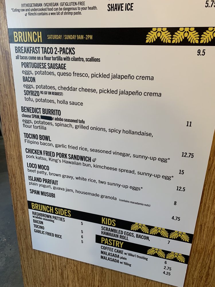 SPAM, sweet Hawaiian rolls, Nunya Sauce, slaw.