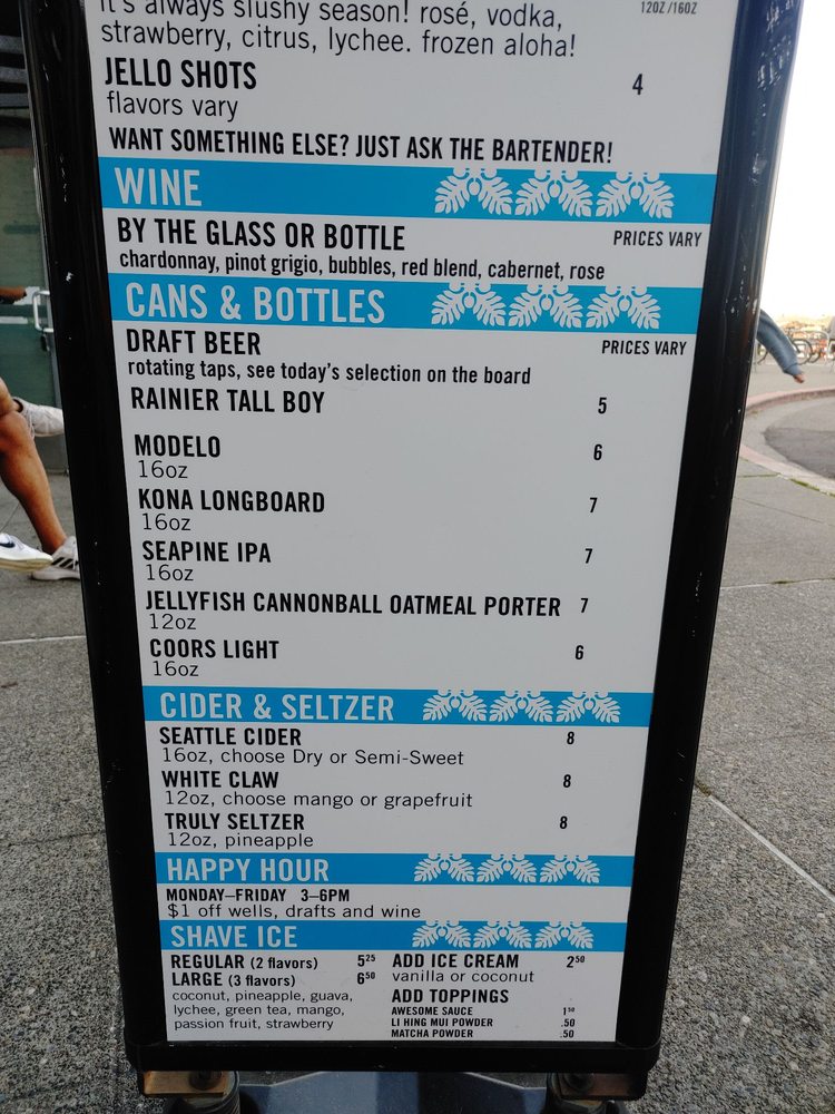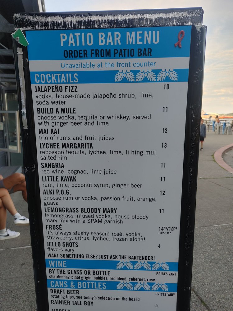Marination Ma Kai is a Hawaiian - Asian Fusion - Korean restaurant located in Seattle, WA. Known for its stunning waterfront views and casual atmosphere, this spot offers a diverse menu with options for pescatarians, vegans, and limited vegetarians. Customers rave about dishes like the Kalbi beef tacos, Aloha sliders, and Loco Moco. The coconut chia popsicle and malasadas are also popular choices for dessert. The food is described as delicious and authentic, with a unique blend of flavors that cater to a wide range of palates. The restaurant's laid-back vibe and friendly service make it a must-visit spot for locals and tourists alike. Whether you're looking for a quick lunch or a leisurely dinner with a view, Marination Ma Kai has something for everyone.